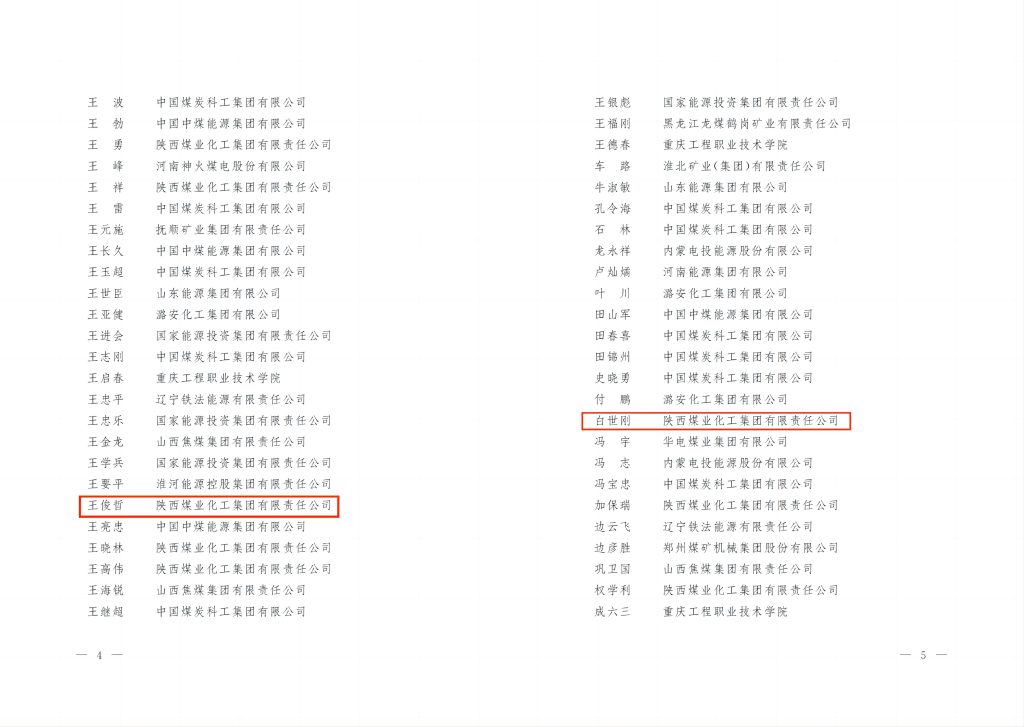 近日,中国煤炭工业协会2023年度煤炭行业技能大师评选结果揭晓,新型能源公司副总经理刘新成、神木分公司白世刚、沣京公司陈通、中泰公司王俊哲4人荣获“煤炭行业技能大师”称号。该公司人力资源部张勇等3人被评为“煤炭行业技能人才优秀工作者”称号。
